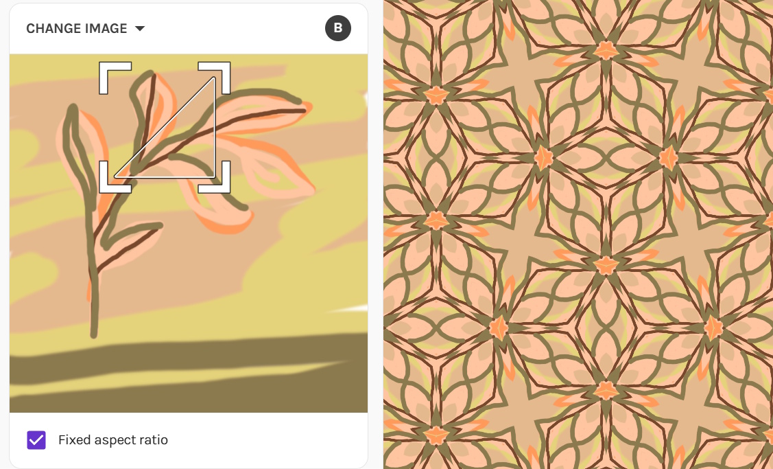 It’s live. The slightest change you bring to your pattern will immediately visually be reflected to the right on the applied pattern surface. No need to get outside Repper to test out your repeating pattern, the testing happens as you work on the pattern right there.